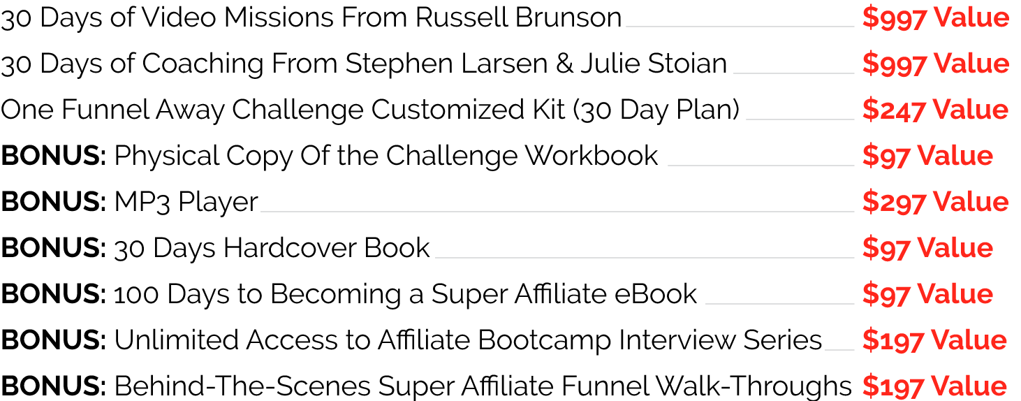 • This 6-Page Funnel You’re Sitting In has cost hours and thousands to create. For You, It’s Free When You Sign Up For Affiliate Bootcamp Below And Then Join The One Funnel Away Challenge...